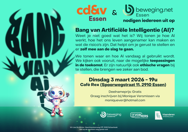 We tonen je waar en hoe AI vandaag al gebruikt wordt. We kijken ook vooruit, naar de mogelijke toepassingen in de toekomst. Er zijn natuurlijk ook ethische vragen bij te stellen, die brengen we zeker aan bod.