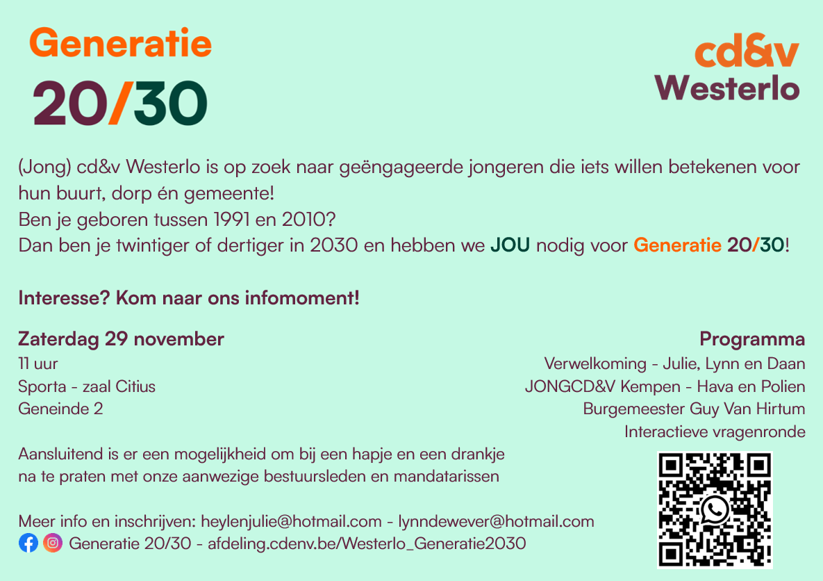 (Jong) cd&v Westerlo is op zoek naar geëngageerde jongeren die iets willen betekenen voor hun buurt, dorp én gemeente!